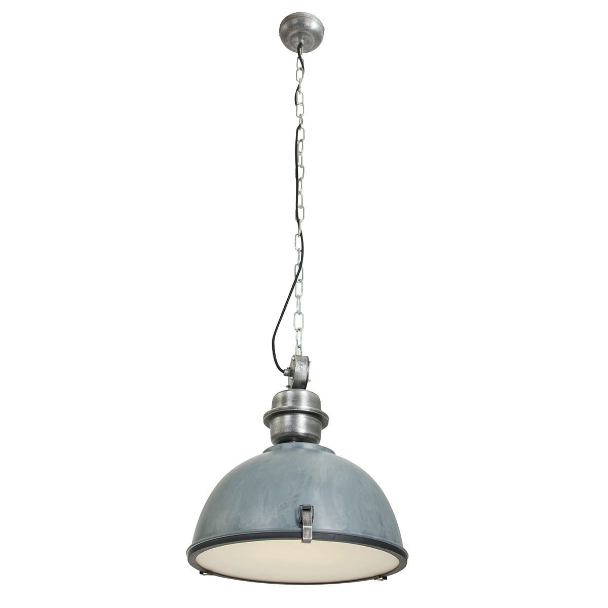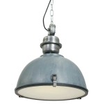 Steinhauer Bikkel 7586GR to loftowa lampa wisząca, której klosz w kolorze postarzanej szarości (betonowy szary) zawieszono na regulowanym przewodzie. Średnica klosza wynosi 42 cm, a zawieszenie można dostosować w zakresie 55–145 cm, dostosowując lampę do wysokości sufitu.