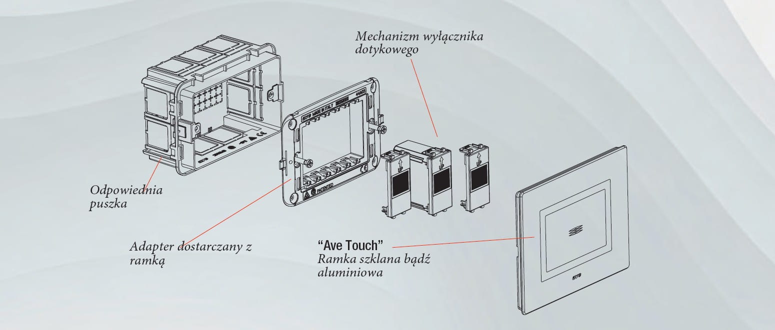 AVE to renomowana włoska marka specjalizująca się w nowoczesnym osprzęcie elektroinstalacyjnym i systemach automatyki budynkowej. Produkty AVE wyróżniają się wysoką jakością wykonania, dopracowanym wzornictwem oraz funkcjonalnością, która odpowiada potrzebom współczesnej architektury wnętrz. Seria AVE Touch to propozycja dla osób, które oczekują od włączników czegoś więcej niż tylko podstawowej funkcji – liczy się także styl, detal i nowoczesna technologia.